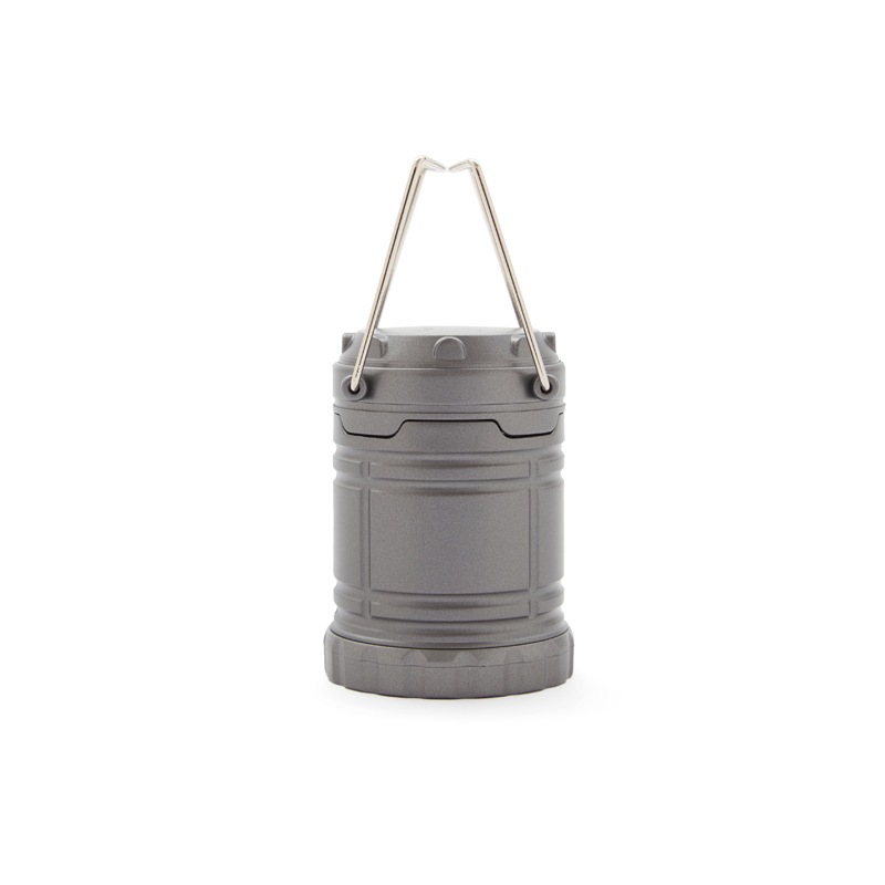 Linterna retráctil de tamaño compacto, fabricada en ABS de color gris. Funciona con 3 pilas AAA (incluidas). Ideal para camping y aventuras al aire libre. Dimensiones: 6,85 x 9,5 cm.