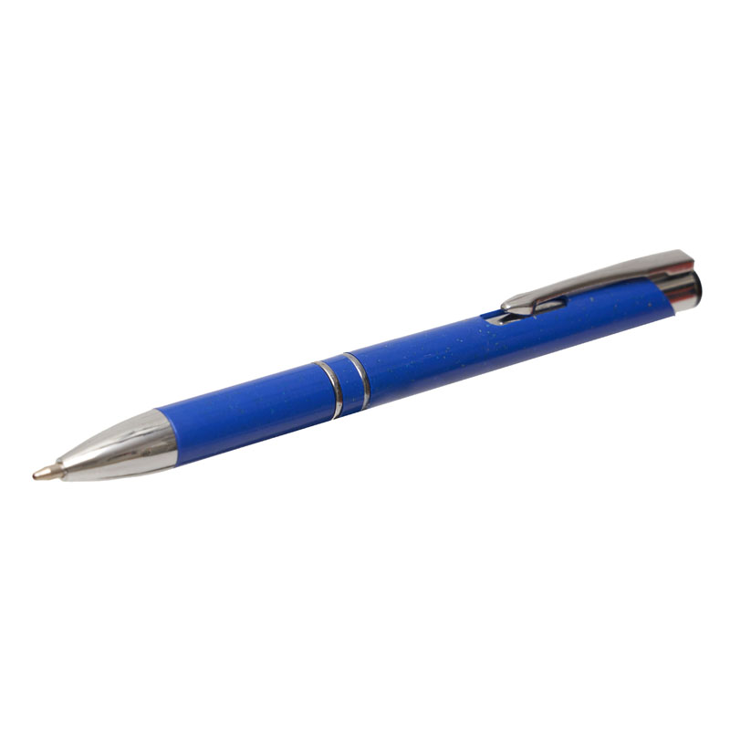 Lápiz confeccionado en paja de trigo, un material sustentable. Los productos hechos de Wheat Straw, pasta de paja de trigo, son de fuentes naturales, y pueden tener un tono irregular debido a las diferencias naturales en el color y la textura del material. ver imagen. Tinta de color azul y apertura con sistema retráctil. ReUseMe.