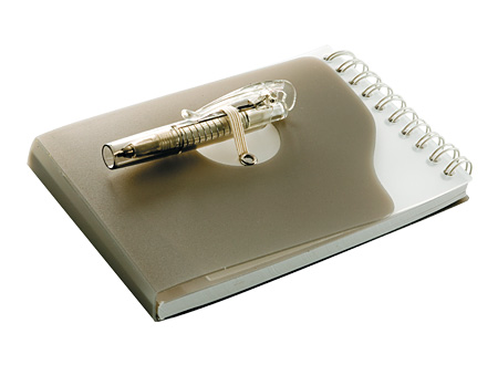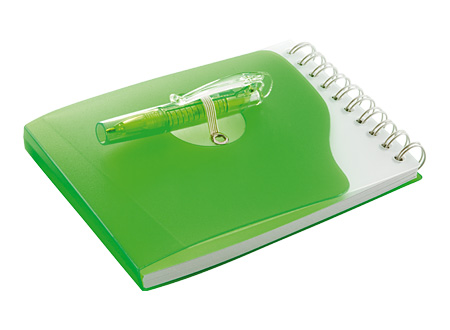 Libreta de Apuntes 68 hojas, con Bolígrafo 8 cm incluido. Tapa y contratapa plásticas rígidas en colores empavonados.