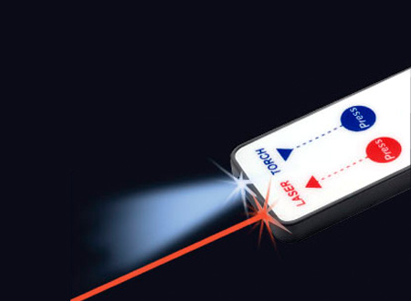 Llavero con Puntero Láser y Linterna LED. Presentación en funda negra.