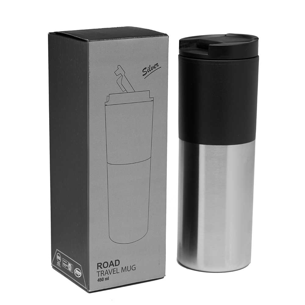 Taza térmica realizada con aluminio e interior de polipropileno negro. Boquilla regulable. Plástico de doble pared. Embalaje: Caja Impresa. Medidas: 22 cm x Diámetro 7,5 cm. Interior realizado en plástico. Capacidad: 450 ml. Producto libre de BPA. LOGO24: Producto disponible para el servicio de logueo en 24 horas respetando unidades mínimas de logueo y 200 unidades máximas. Consultar términos y condiciones del servicio.