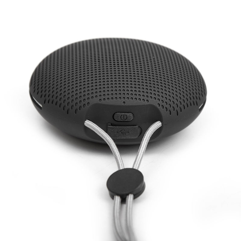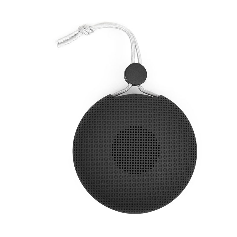 Parlante circular portátil con tecnología bluetooth y micrófono manos libres. Realizado en ABS, con correa para colgarlo y facilitar su transporte. | Batería de 400mAh | Potencia del parlante: 3W | Frecuencia: 60Hz-16KHz | Conexión5v/300mA | Peso: 159g | Medidas Diámetro 98* altura45mm | Kingtech.