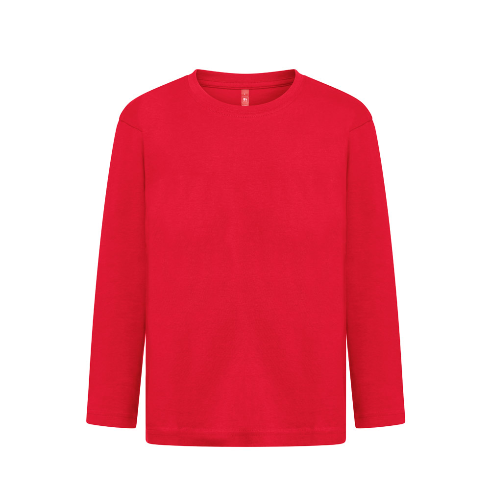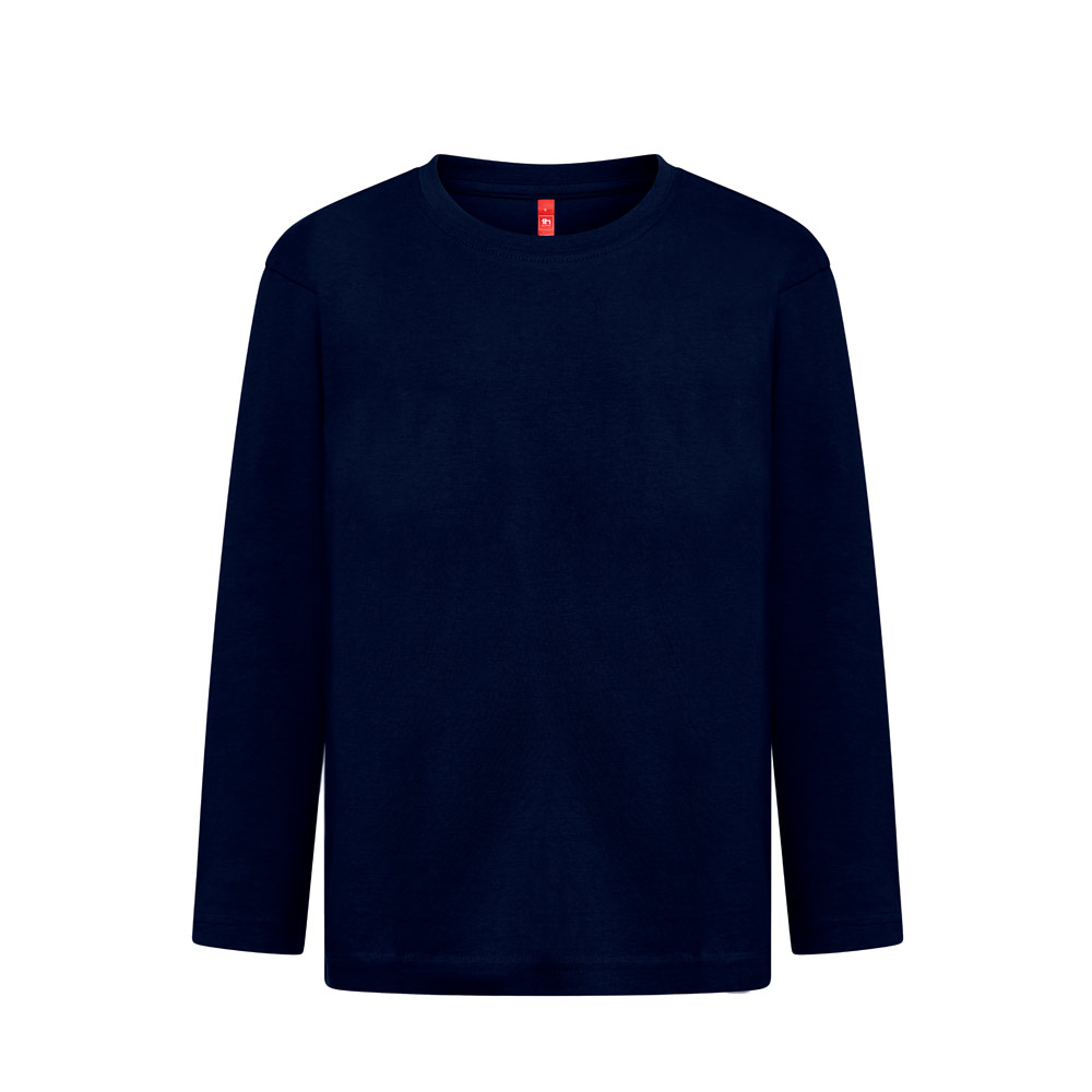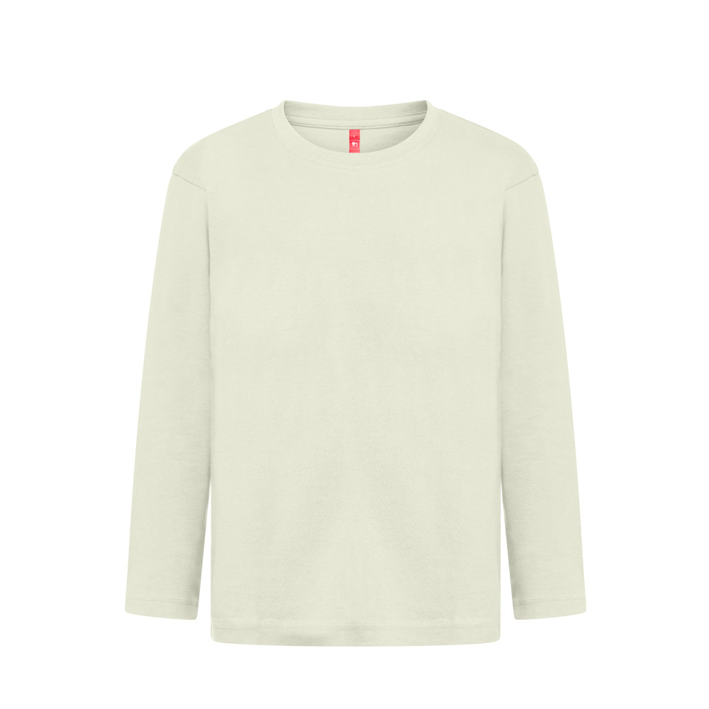 Camiseta de manga larga (150 g/m²), con tratamiento enzimático, para niño en tejido jersey (100% algodón con prácticas agrícolas sostenibles). Cuello canalé 1x1 con banda de refuerzo de punto. Camiseta tubular de corte regular y doble costura en mangas y bajo de la prenda. Tamaños: 2, 4, 6, 8, 10, 12