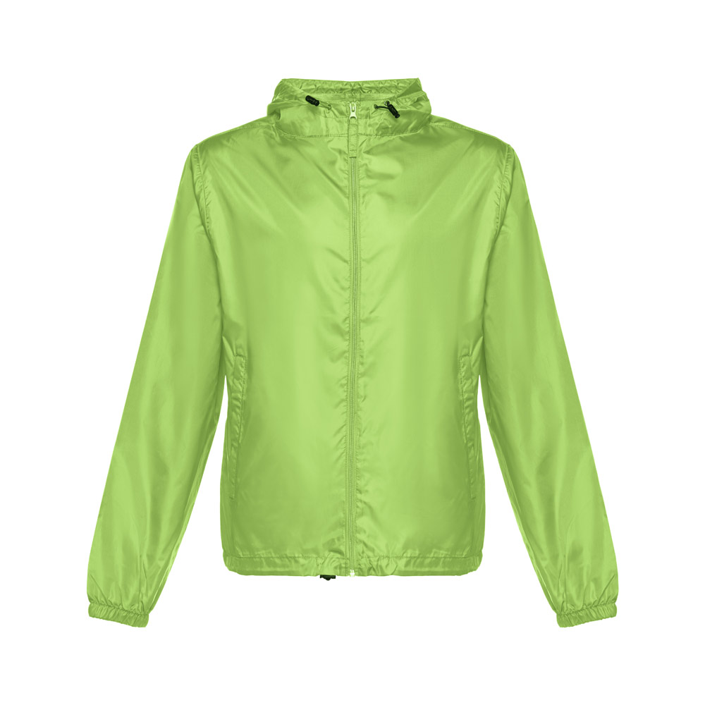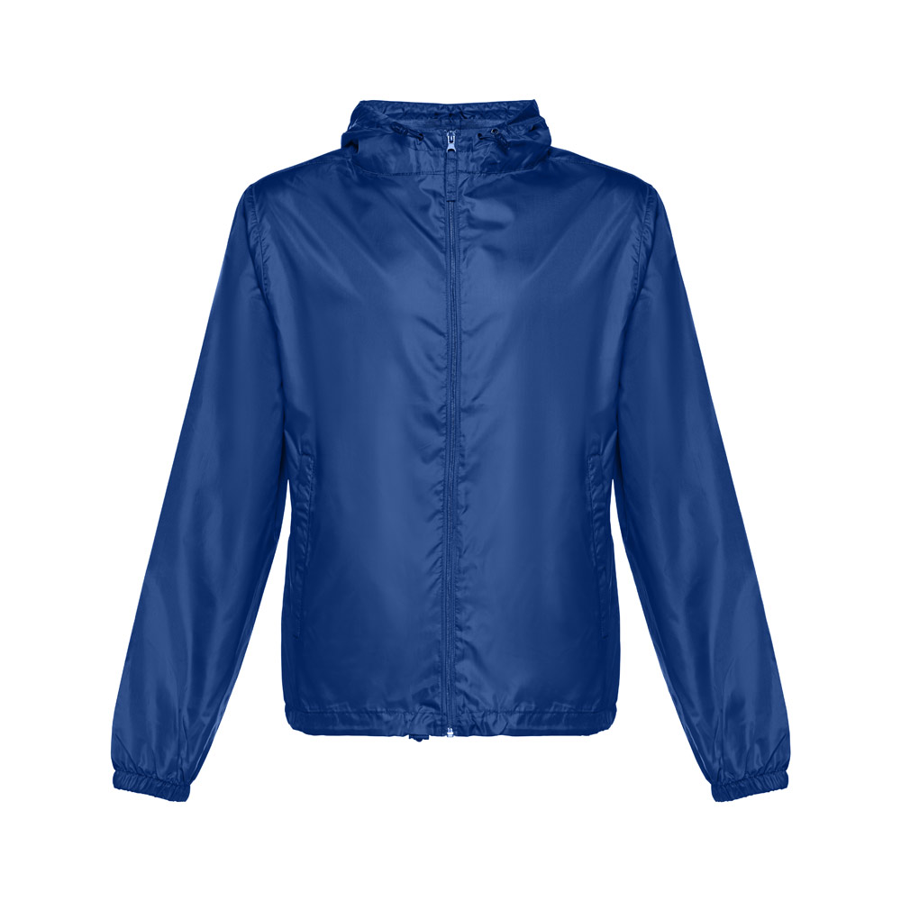 Cortavientos unisex en tafetán de poliéster 100% (65 g/m²). Contiene capucha con cierre ajustable, forro de malla, ajuste elástico con cierre en la parte inferior y bolsillos laterales con cremallera de plástico. Tallas: XS, S, M, L, XL, XXL
